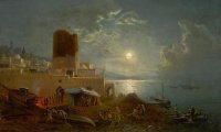 Əsirlər boyu əfsanə və nağılların baş qəhrəmanı olan Qız qalası rəssamın da marağını cəlb edib və o dəniz sahilindəki bu möhtəşəm gözəlliyi xəyal dünyasından süzərək, ay işığının fonunda təsvir edib.