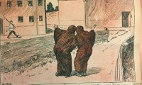 "Molla Nəsrəddin" jurnalının səkkizinci sayının üz qabığında verilən karikaturada İran və Rusiya arasına çəkilən sərhəd təsvir edilirdi. Bu karikatura həm parçalanmanın, həm də iki ölkə arasındakı inkişaf fərqinin göstəricidir. Rusiya tərəfdə əli silahlı növbətçi varkən, İran tərəfdə izdihamlı qrup sərhədi daşlayır.